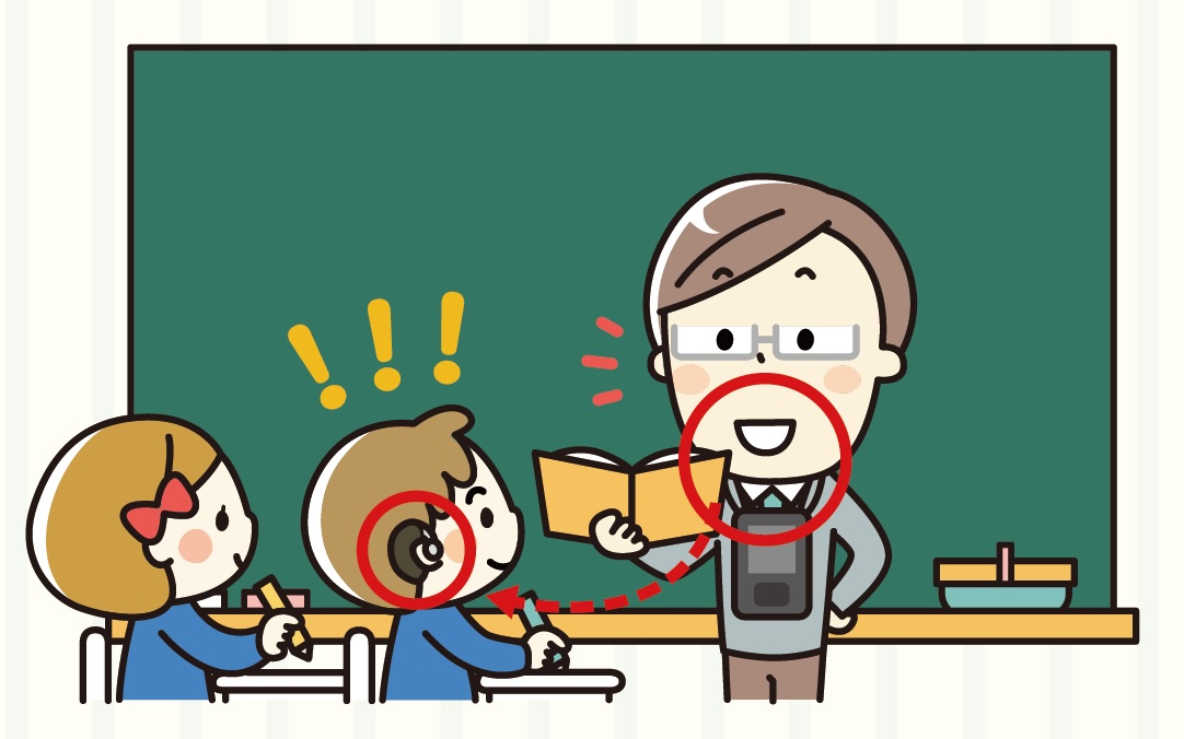 「先生との距離が遠い」「教室が騒がしい」「グループでの話」などでは、補聴器や人工内耳を装用していても、ことばの聞き取りが難しくなってしまいます。