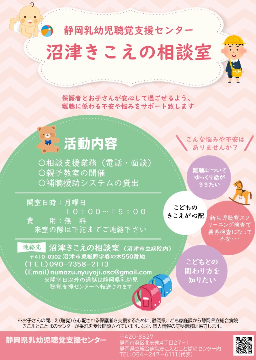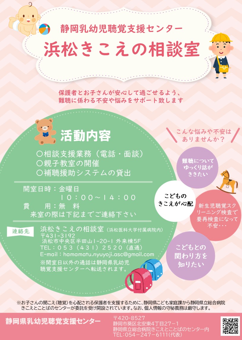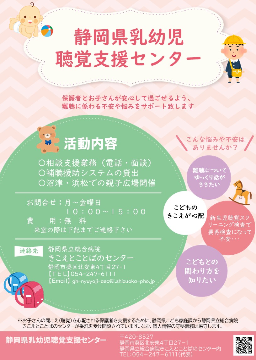 (TEL)054-247-6111(代表) 「乳幼児聴覚支援センターへ」とお伝えください。