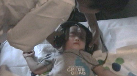 主にABR(聴性脳幹反応検査)を行います。この検査は脳の中で音がどのように聴こえているか調べます。